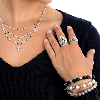 Lois Hill's intricate designs, inspired by Northern Thailand's tribes, feature a meticulously hand-woven collection of sterling silver rings.