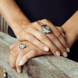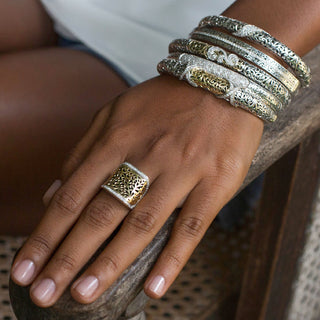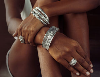 Lois Hill's intricate designs, inspired by Northern Thailand's tribes, feature a meticulously hand-woven collection of sterling silver rings.