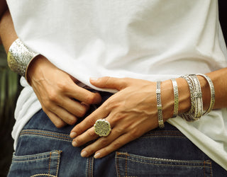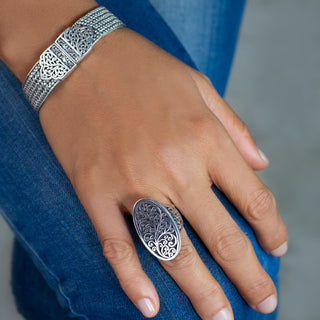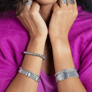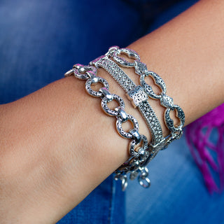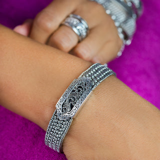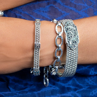 Intricate Textile Weave Bracelet (15mm) with Alhambra LH Scroll ID & Toggle Closure