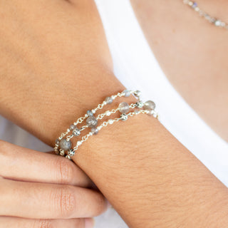 LH Scroll Bead 4mm with Faceted Labradorite 4mm Alternate Wire-Wrapped Bracelet