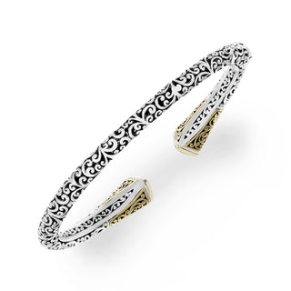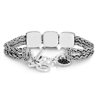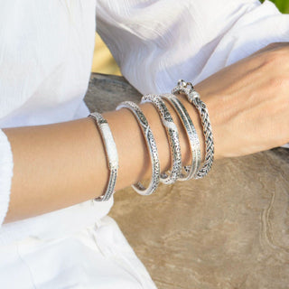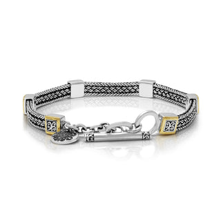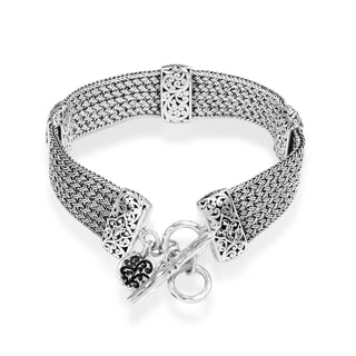 LH Textile Weave (15mm) Bracelet with Hand Carved & Granulated Vertical Stations