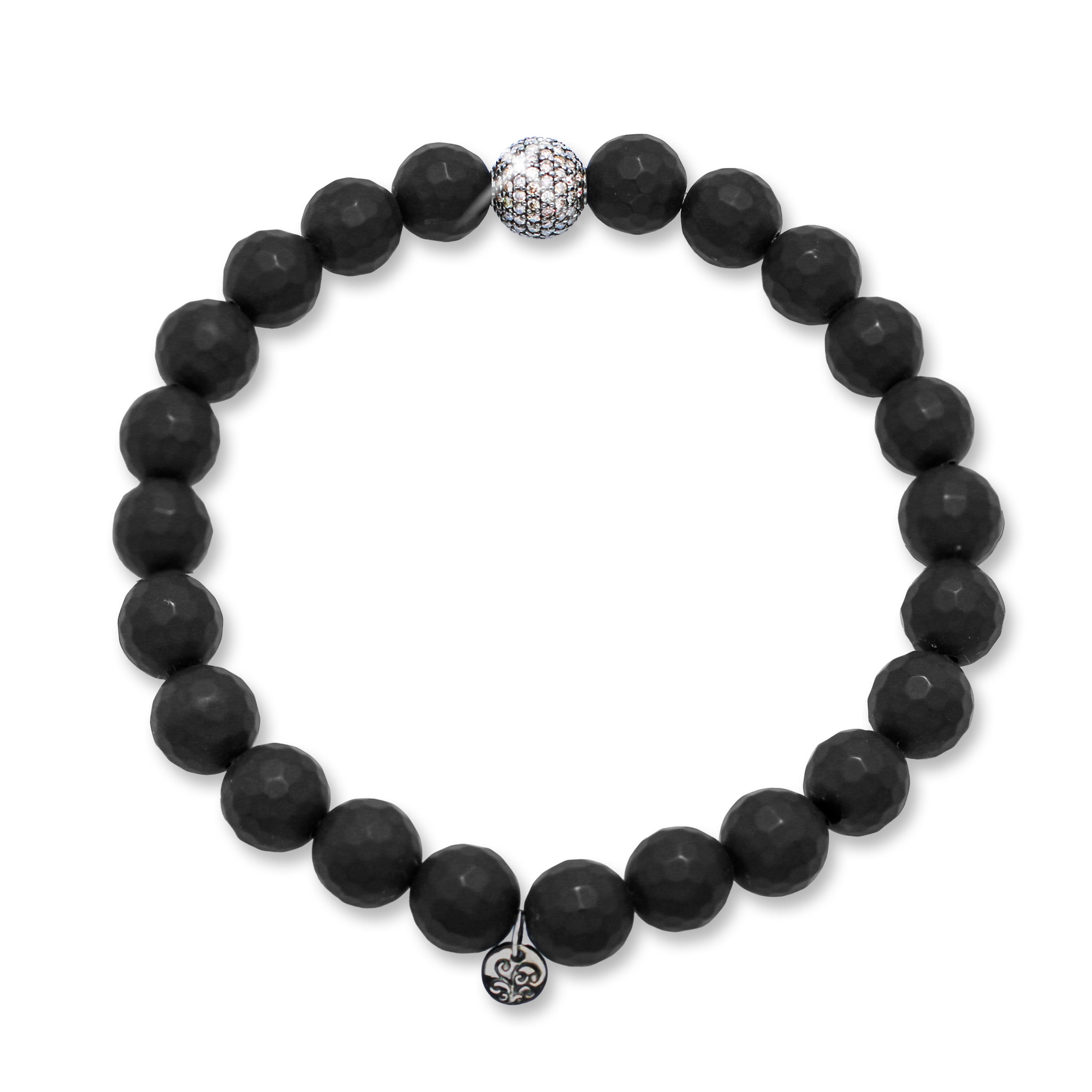 This Paved Brown Diamond Ball Bead with Mattle Black Onyx Stretch Bracelet (8mm Diameter)