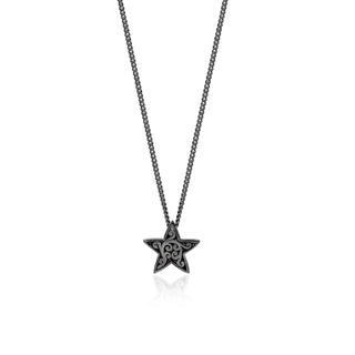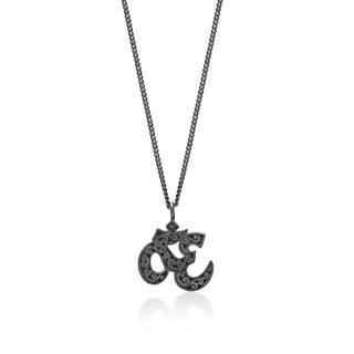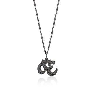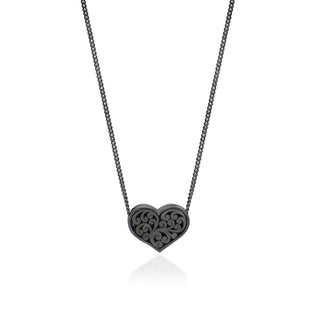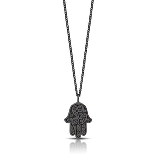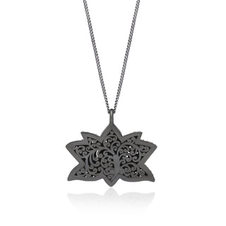 Small Black Diamond Lotus Pendant Necklace in Black Rhodium Plated Sterling Silver