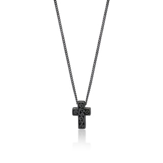 Small Black Diamond Cross Pendant Necklace in Black Rhodium Plated Sterling Silver