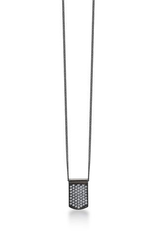 White Diamond Dog Tag Pendant Necklace in Black Rhodium Plated Sterling Silver