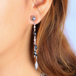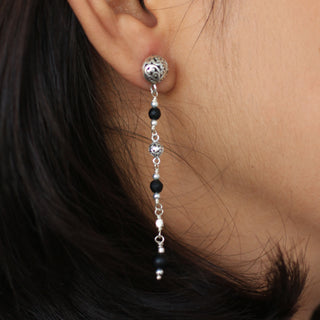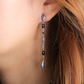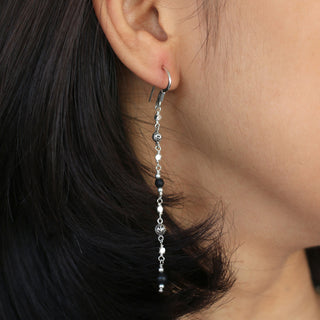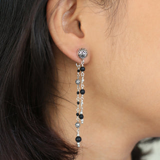 LH Scroll Bead with Matte Black Onyx 2mm & 4mm Wire-Wrapped Waterfall Stud Earrings