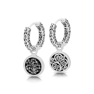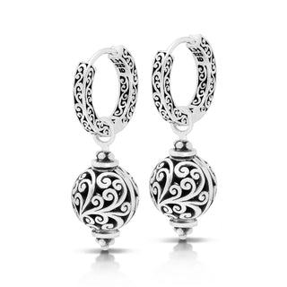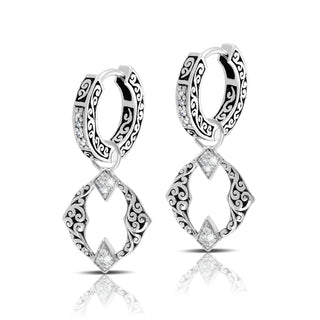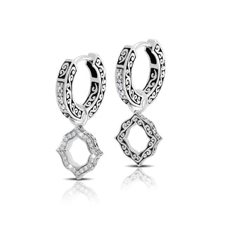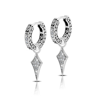LH Diamond Scroll “Huggie” with Pave Stylized Carved Diamond Earring Charm (sold as set)