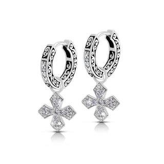 LH Diamond Scroll “Huggie” with Maltese Cross Diamond Earring Charm (sold as set)