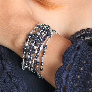 LH Scroll Bead with Matte Black Onyx Smooth Bead 4mm Alternate Stretch Bracelet