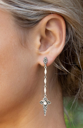 LH Scroll Bead with Matte Black Onyx 2mm & 4mm Wire-Wrapped Waterfall Stud Earrings