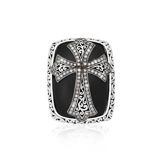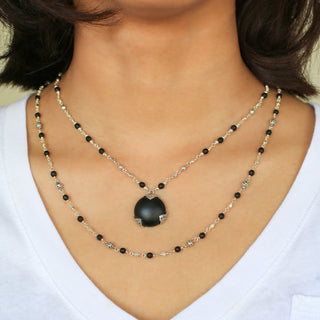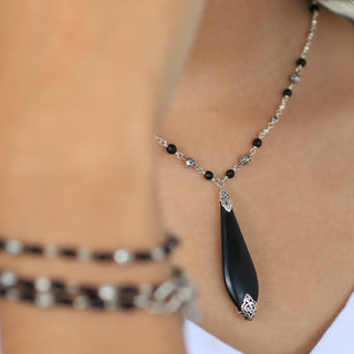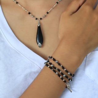 LH Scroll Bead with Matte Black Onyx Faceted Bead 4mm Alternate Stretch Bracelet