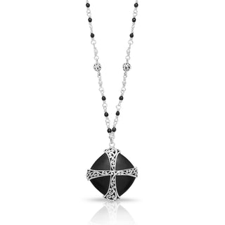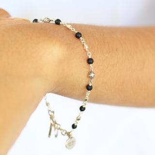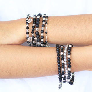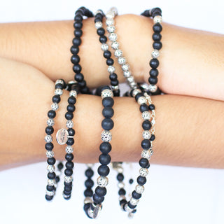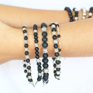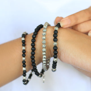 LH Scroll Bead with Matte Black Onyx Smooth Bead 4mm Alternate Stretch Bracelet