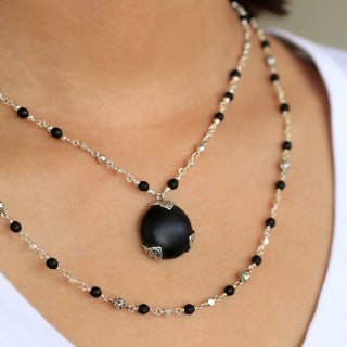 LH Scroll Bead with Matte Black Onyx 2mm & 4mm Wire-Wrapped Waterfall Stud Earrings