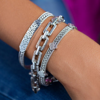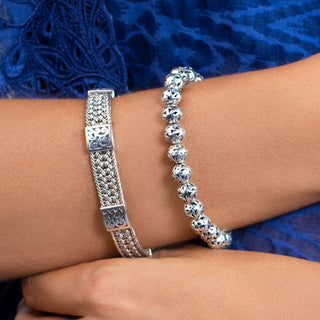 Intricate Textile Weave Bracelet (15mm) with Alhambra LH Scroll ID & Toggle Closure