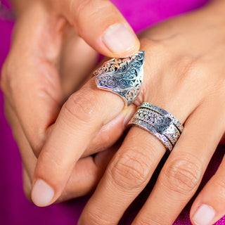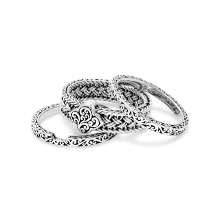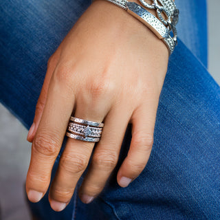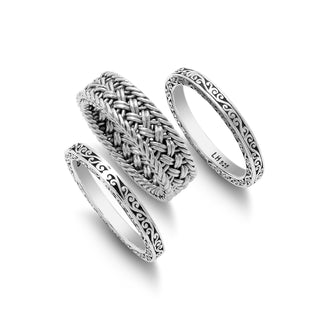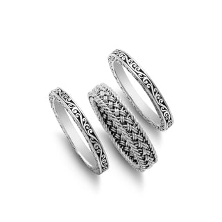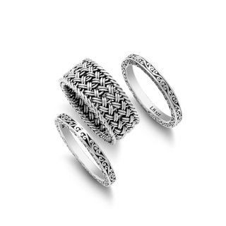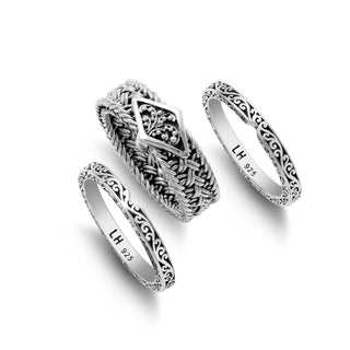 LH Textile Weave Diamond Shape Granulated Station 3-Stack Ring (11mm total width)